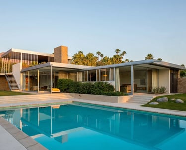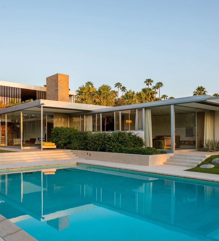 Muncul setelah Perang Dunia II, Mid-Century Modern adalah gaya yang mencerminkan optimisme dan kemajuan teknologi pasca-perang. Ciri khasnya meliputi garis bersih, bentuk organik yang lebih lunak, dan penggunaan material baru seperti vinil, plastik laminasi, dan aluminium. Desain furnitur juga menjadi bagian integral dari gaya ini, dengan fokus pada fungsi dan kenyamanan. Rumah-rumah Mid-Century Modern sering menampilkan denah lantai terbuka, jendela besar, dan perpaduan yang harmonis antara interior dan eksterior.