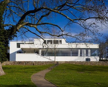 Bauhaus was a pioneering art and design school in Germany, founded by Walter Gropius. Its style is characterized by extreme functionality, simple geometric forms, and minimal ornamentation. The focus was on mass production and the integration of art with industry. Common materials include steel, concrete, and glass. Bauhaus buildings often feature clean facades, large windows, and open floor plans, creating a spacious and efficient feel.
