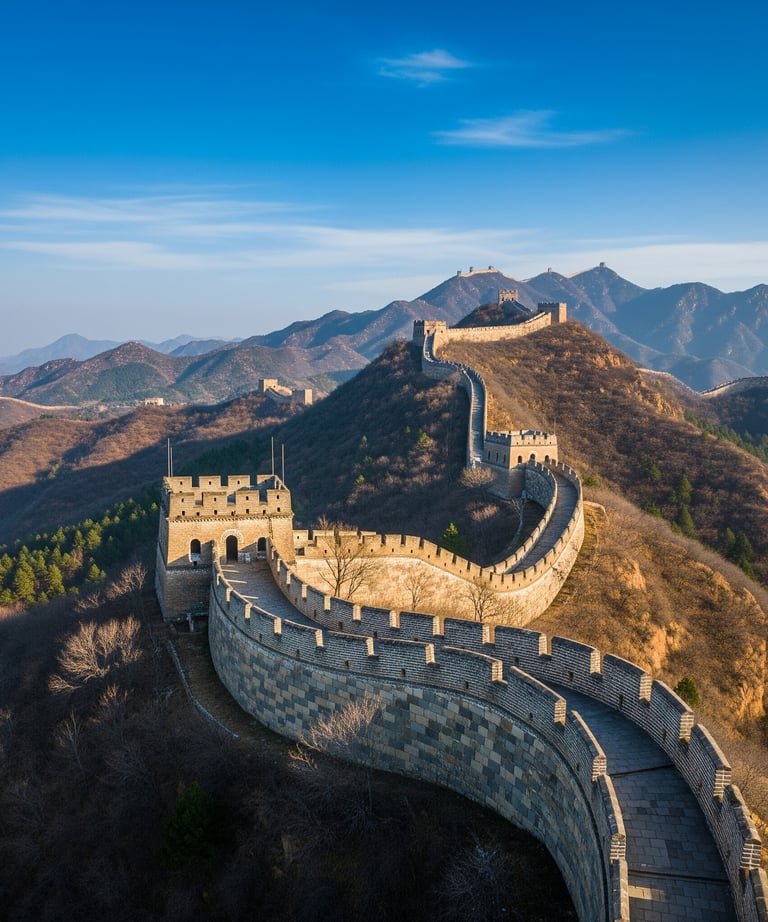 Tembok raksasa ini membentang lebih dari 21.000 kilometer melintasi pegunungan, gurun, dan lembah. Awalnya dibangun untuk pertahanan dari serangan musuh, kini menjadi simbol ketekunan dan kekuatan rakyat Tiongkok. Struktur ini masih menjadi daya tarik wisata nomor satu di Asia.
